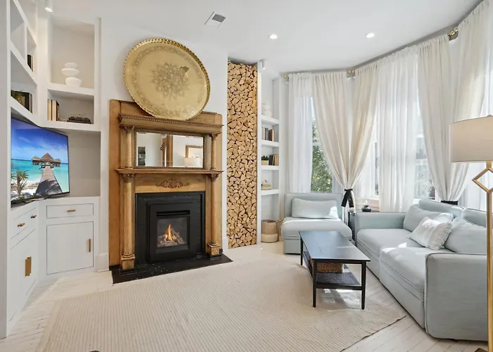 Situated 25 minutes' walk from McPherson Square, Boho Bliss Bloomingdale Plus Parking Washington villa invites guests to relax at a patio.